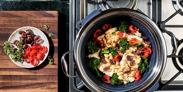 - Prepare the ragu. In a HexClad 10QT/10 L Hybrid Stockpot, heat oil over medium heat. Add the onions, celery, mushrooms and garlic and cook, stirring often until the onions are translucent, 10 to 15 minutes.