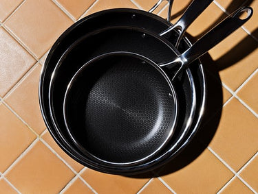 Despídete de las torres de platos sucios. La superficie avanzada de HexClad permite una limpieza rápida y sencilla, para pasar menos tiempo en el fregadero y más tiempo haciendo lo que te gusta hacer.