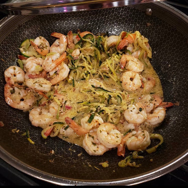 Tonight's dinner is Creamy Lemon Garlic Shrimp and Zoodles cooked in the @hexclad wok. Love this dish, and this pan!