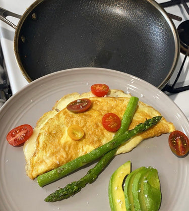 Easy, quick cheesy omelette on my @hexclad pan.